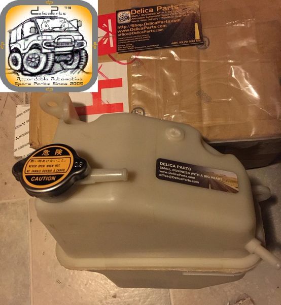New Mitsubishi Delica Radiator Expansion Bottle (External Coolant Tank) including Pressure Valve Cap and overflow hose. L-400